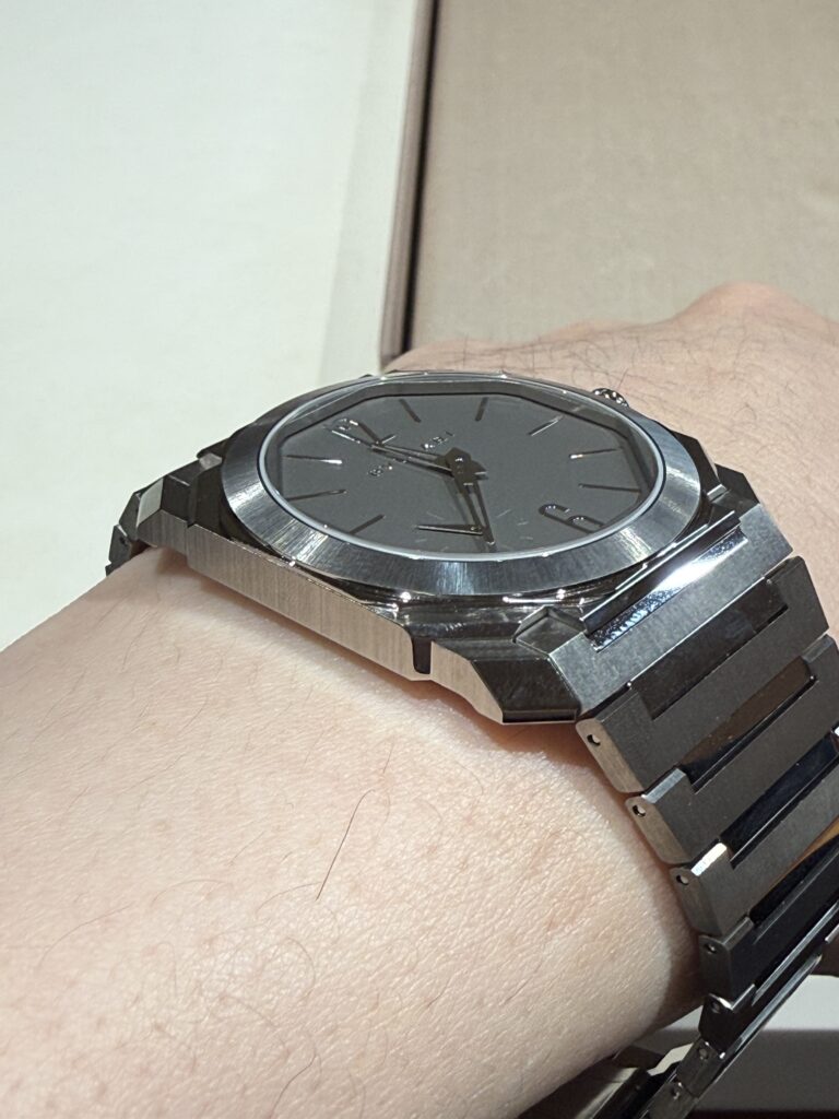 しかし腕に乗せたときの収まりの良さ、ケースとブレスレットの一体感は明らかに完成度が高く、日常使いとしてのリアリティが一段引き上げられている印象を受けました。