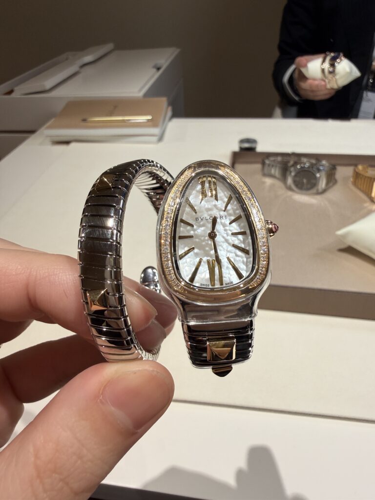 建築的な構成とジュエラーらしい美意識が融合しており、この時点でブルガリの立ち位置がはっきりと見えてきます。