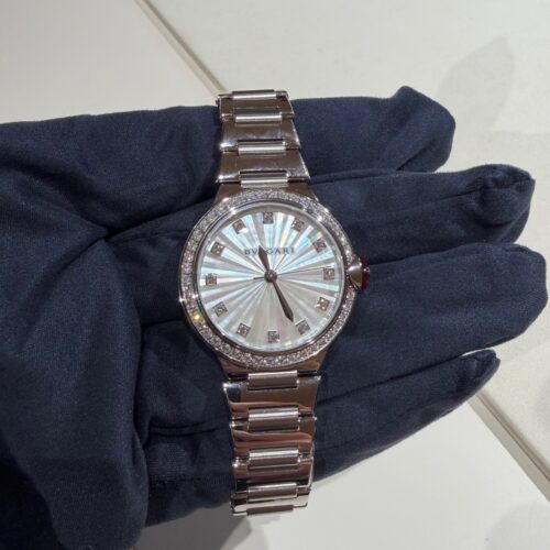 写真では伝わりにくい部分ですが、実機は“着けるジュエリー”としての完成度が非常に高く、時計というよりもラグジュアリーアイテムとしての説得力を強く感じます。